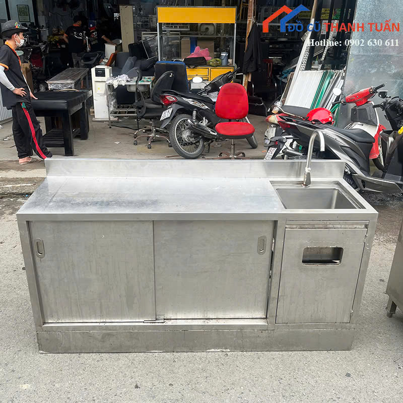 Tủ bếp cũ thích hợp cho nhà hàng, quán ăn, bếp công nghiệp hoặc cơ sở chế biến thực phẩm. Quý khách có thể đến Đồ Cũ Thanh Tuấn xem trực tiếp để chọn mẫu hoặc liên hệ qua Zalo để được tư vấn, giữ hàng nhanh nhất.