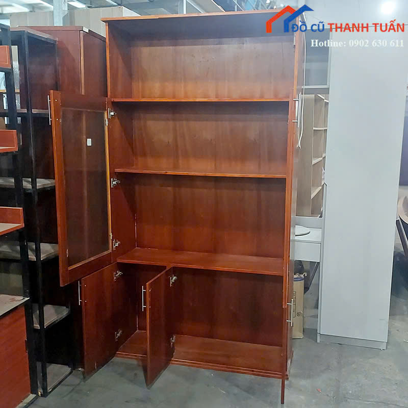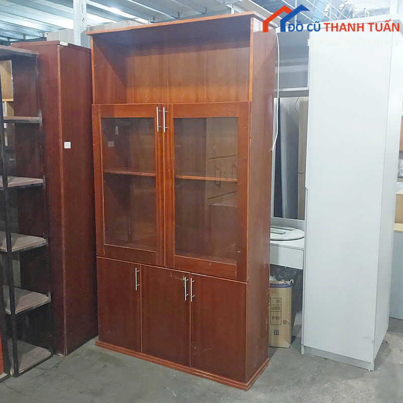 Thanh Lý Tủ Hồ Sơ Gỗ Cũ Màu Nâu Phối Kính