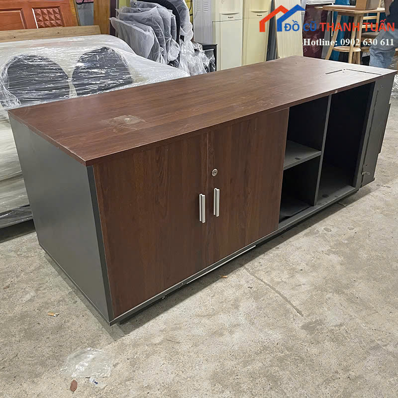 Mô tả: Tủ hồ sơ gỗ cũ thiết kế dài, chia 3 ngăn lớn gồm 2 cánh mở có khóa và 1 khoang trống có kệ để đồ tiện dụng phù hợp cho văn phòng, công ty, phòng làm việc hoặc sử dụng tại nhà. Kích thước rộng rãi giúp lưu trữ nhiều tài liệu, hồ sơ hoặc thiết bị văn phòng.