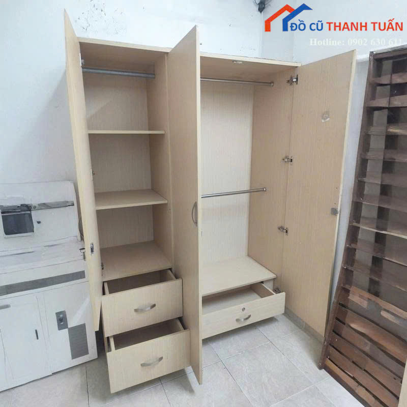 Đồ Cũ Thanh Tuấn có nhiều mẫu tủ quần áo cũ đa dạng kích thước, kiểu dáng để quý khách lựa chọn. Hãy ghé trực tiếp kho hoặc liên hệ Zalo để được hỗ trợ tư vấn và giữ hàng nhanh chóng.