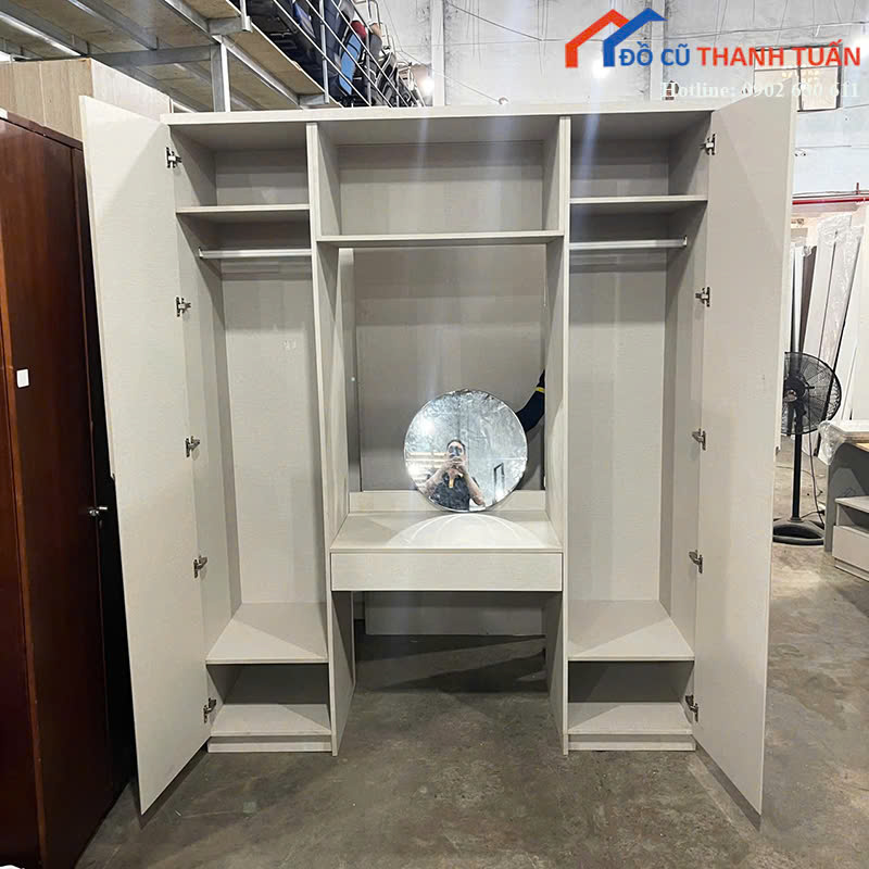 Khách có thể đến kho để kiểm tra sản phẩm trực tiếp hoặc liên hệ qua Zalo để nhận thêm hình ảnh chi tiết. Đồ Cũ Thanh Tuấn luôn có nhiều mẫu tủ quần áo cũ, kệ tủ và các sản phẩm nội thất khác, giúp khách hàng dễ dàng chọn lựa cho không gian của mình.