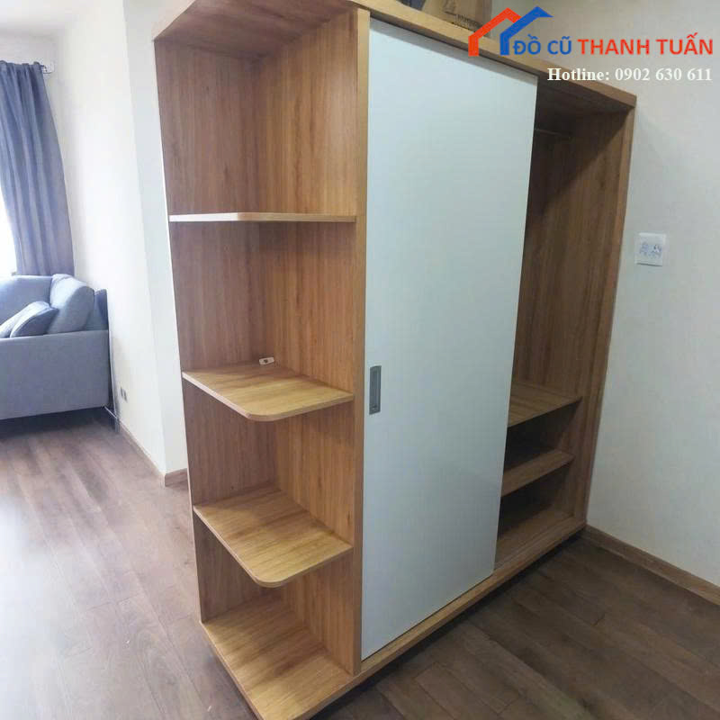 Thanh Lý Tủ Quần Áo Cũ Vân Gỗ Thiết Kế Cửa Lùa Tiện Lợi