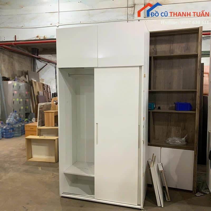 Tủ Quần Áo Cũ Màu Trắng Thiết Kế 2 Cánh Lùa Nhỏ Gọn