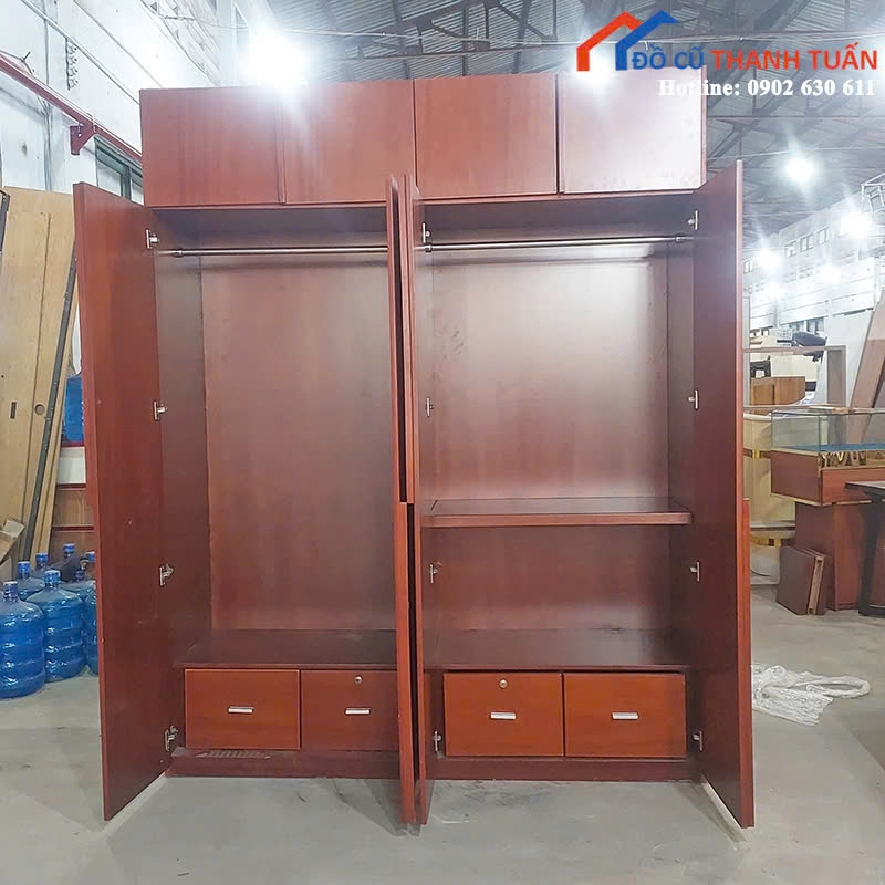 Tủ Quần Áo Gỗ Cũ 1M8x2M3 Thiết Kế 4 Cánh Tiện Lợi