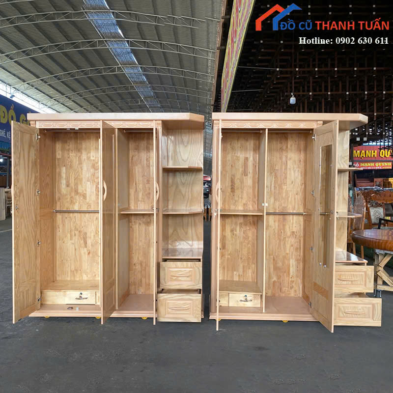 Tủ quần áo thanh lý với nhiều kích thước khác nhau để khách lựa chọn theo diện tích phòng. Khách hàng nên đến trực tiếp Đồ Cũ Thanh Tuấn để tham khảo thêm hoặc liên hệ Zalo để được hỗ trợ tư vấn và giữ hàng ngay nhé.