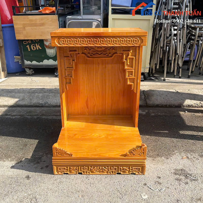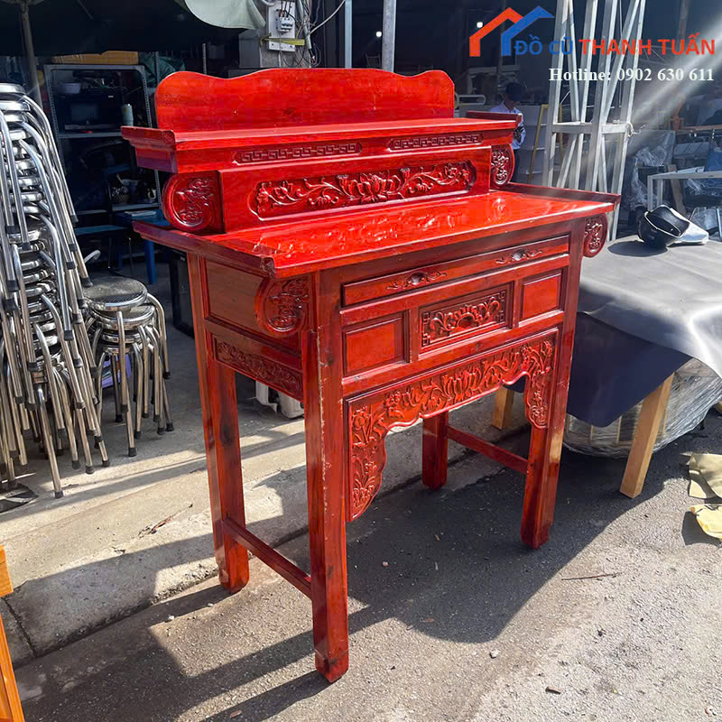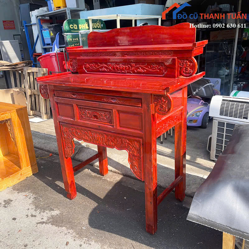 Tủ thờ cũ được chạm khắc tinh xảo, sản phẩm mang lại sự trang nghiêm và sang trọng cho không gian thờ cúng. Hãy ghé trực tiếp kho Đồ Cũ Thanh Tuấn để xem thêm các sản phẩm nội thất khác hoặc liên hệ qua Zalo để được tư vấn và giữ hàng.