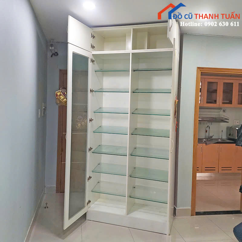 Thanh Lý Tủ Trưng Bày Cũ Màu Trắng Nhiều Tầng Tiện Lợi