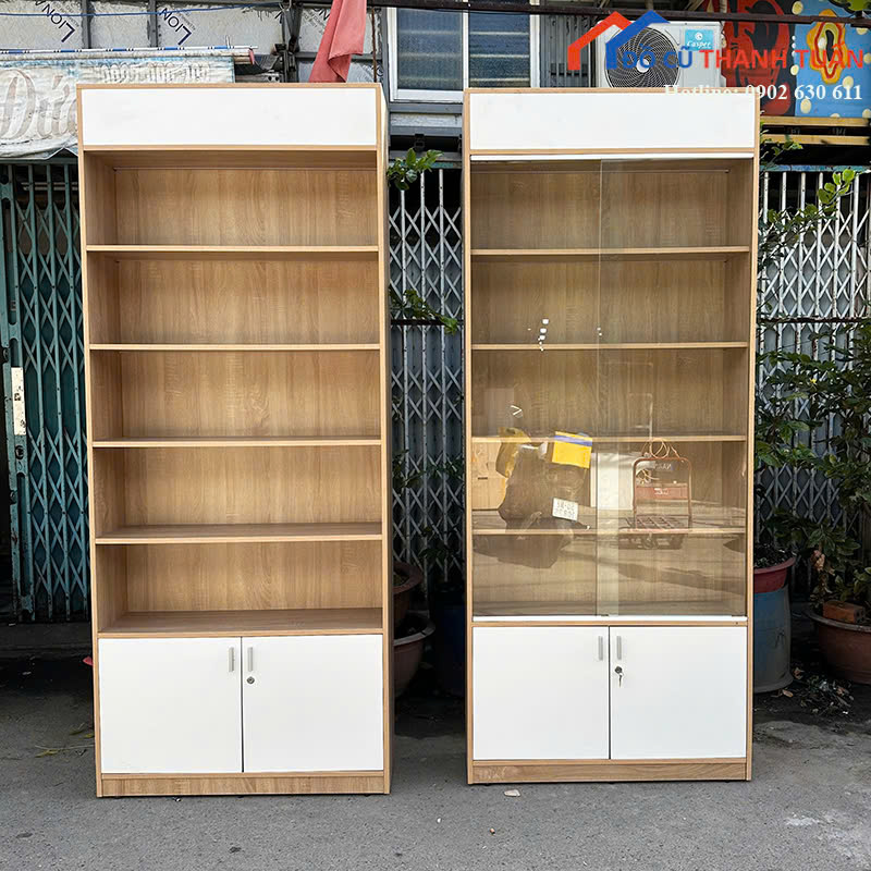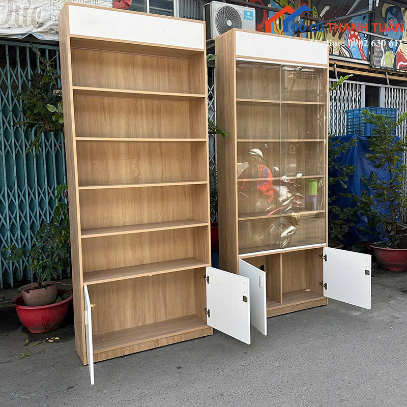Thanh Lý Tủ Trưng Bày Cũ Vân Gỗ Phối Trắng
