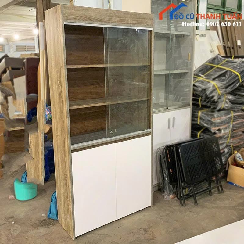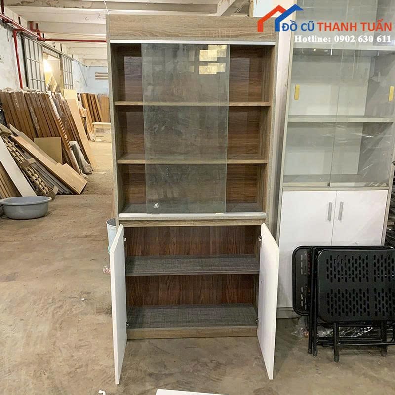 Tủ Trưng Bày Cũ Vân Gỗ Thiết Kế Cửa Lùa Tiện Lợi